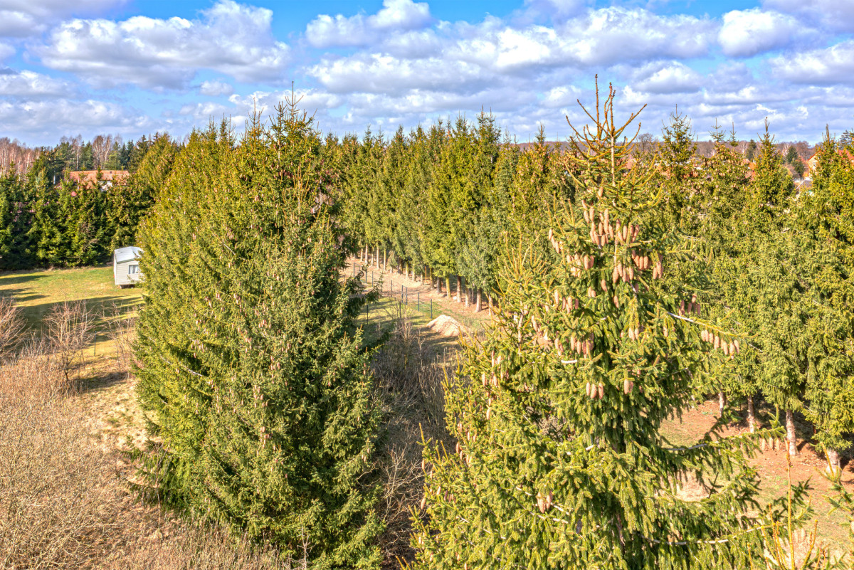 Teren ogrodzony świerkami, dzięki czemu w upalne dni możemy liczyć na naturalny cień.