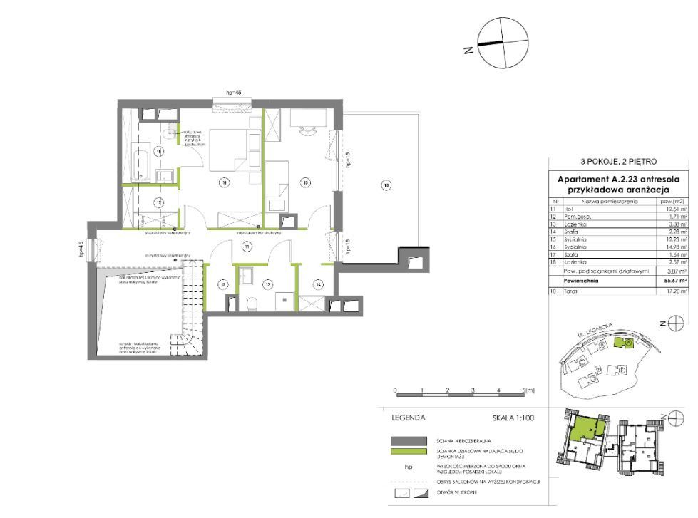 • Inwestycja ta, to osiedle pięciu budynków mieszczących w sumie 120 apartamentów o zróżnicowanej powierzchni – od 28 m2 do 160 m2. Wysokie sufity, duże okna i przemyślany układ sprawiają, że cechuje je optymalna ekspozycja na światło słoneczne. Wszystkie mieszkania dysponują balkonami, przestronnymi tarasami bądź – jak w przypadku lokali parterowych – prywatnymi ogródkami. Niektóre z apartamentów na najwyższej kondygnacji posiadają antresole.