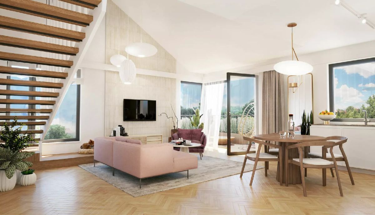 • Inwestycja ta, to osiedle pięciu budynków mieszczących w sumie 120 apartamentów o zróżnicowanej powierzchni - od 28 m2 do 160 m2. Wysokie sufity, duże okna i przemyślany układ sprawiają, że cechuje je optymalna ekspozycja na światło słoneczne. Wszystkie mieszkania dysponują balkonami, przestronnymi tarasami bądź - jak w przypadku lokali parterowych - prywatnymi ogródkami. Niektóre z apartamentów na najwyższej kondygnacji posiadają antresole.