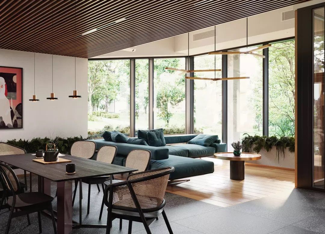 • W centrum kompleksu znajduje się budynek wspólny do dyspozycji mieszkańców. Wewnątrz mieszczą się sala spotkań i sala ćwiczeń.