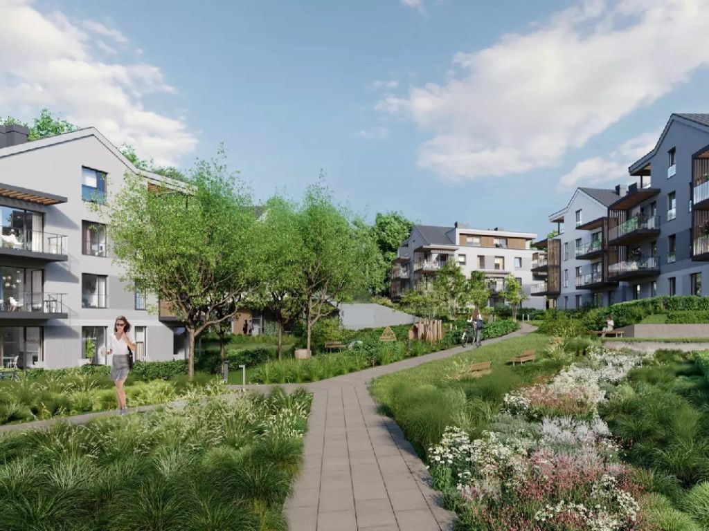 • Inwestycja ta, to osiedle pięciu budynków mieszczących w sumie 120 apartamentów o zróżnicowanej powierzchni - od 28 m2 do 160 m2. Wysokie sufity, duże okna i przemyślany układ sprawiają, że cechuje je optymalna ekspozycja na światło słoneczne. Wszystkie mieszkania dysponują balkonami, przestronnymi tarasami bądź - jak w przypadku lokali parterowych - prywatnymi ogródkami. Niektóre z apartamentów na najwyższej kondygnacji posiadają antresole.
