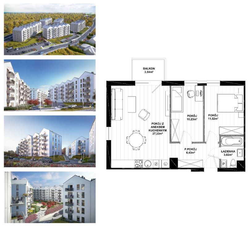 • Szeroki wybór metraży od 32 m2 do 72 m2 pozwala na dopasowanie mieszkania do swoich aktualnych potrzeb. W ofercie znajdują się funkcjonalne mieszkania od 2 do 4 pokoi zaprojektowane z myślą zarówno o osobach planujących zakup wymarzonego, pierwszego mieszkania jaki i o rodzinach z dziećmi, które potrzebują więcej przestrzeni.