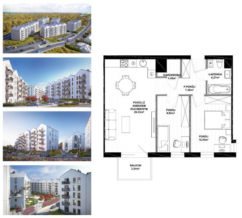 • Szeroki wybór metraży od 32 m2 do 72 m2 pozwala na dopasowanie mieszkania do swoich aktualnych potrzeb. W ofercie znajdują się funkcjonalne mieszkania od 2 do 4 pokoi zaprojektowane z myślą zarówno o osobach planujących zakup wymarzonego, pierwszego mieszkania jaki i o rodzinach z dziećmi, które potrzebują więcej przestrzeni.