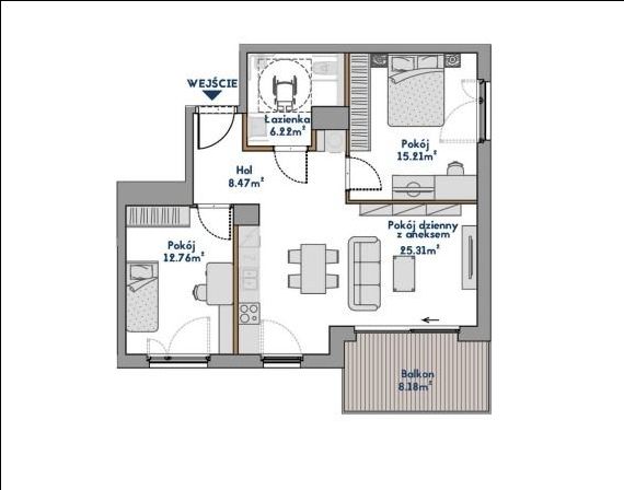 • Apartamenty 2-, 3- i 4-pokojowe o powierzchni od ok. 47 do 89 m² z dużymi balkonami, tarasami lub prywatnymi ogródkami.