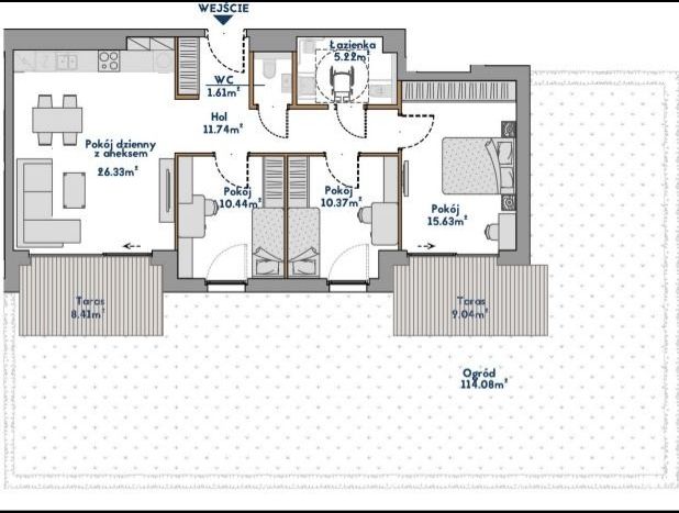 • Apartamenty 2-, 3- i 4-pokojowe o powierzchni od ok. 47 do 89 m² z dużymi balkonami, tarasami lub prywatnymi ogródkami.