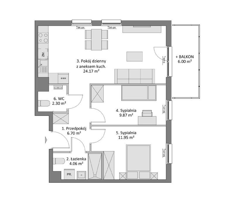 Przedstawione wizualizacje mają charakter poglądowy i nie stanowią oferty handlowej. Mieszkania są oddawane w standardzie deweloperskim, bez wykończenia.