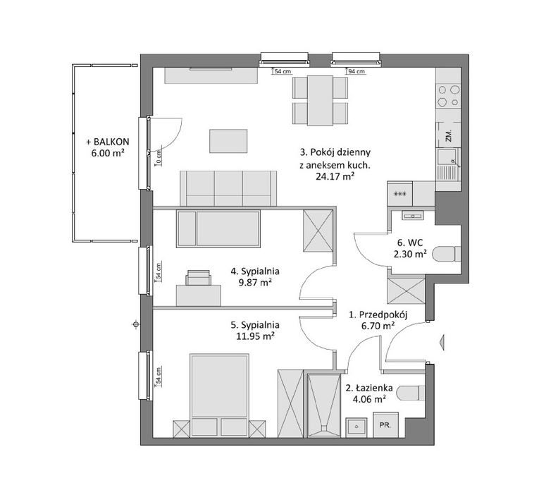 Przedstawione wizualizacje mają charakter poglądowy i nie stanowią oferty handlowej. Mieszkania są oddawane w standardzie deweloperskim, bez wykończenia.