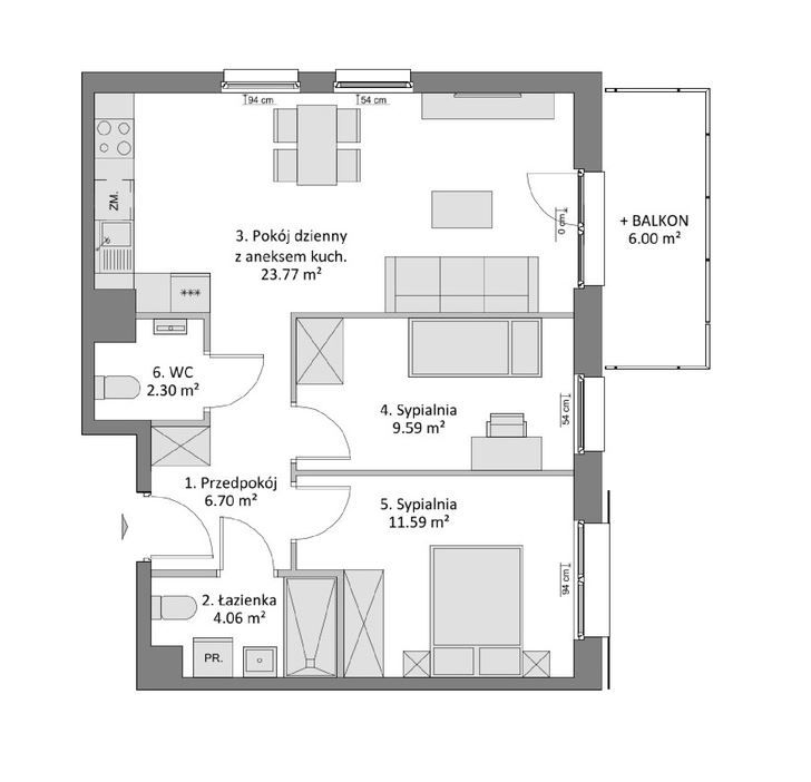 Przedstawione wizualizacje mają charakter poglądowy i nie stanowią oferty handlowej. Mieszkania są oddawane w standardzie deweloperskim, bez wykończenia.