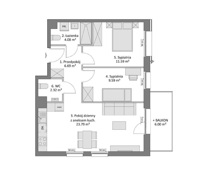 Przedstawione wizualizacje mają charakter poglądowy i nie stanowią oferty handlowej. Mieszkania są oddawane w standardzie deweloperskim, bez wykończenia.