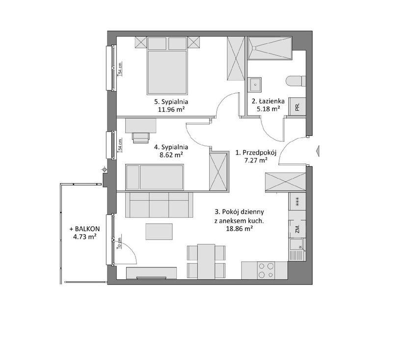 Przedstawione wizualizacje mają charakter poglądowy i nie stanowią oferty handlowej. Mieszkania są oddawane w standardzie deweloperskim, bez wykończenia.