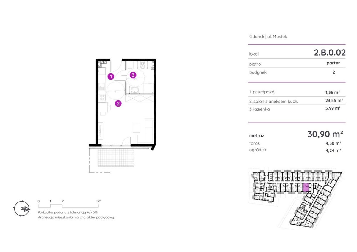 • Przestronne balkony i tarasy – lokale na piętrach wyposażone są w balkony o powierzchni do 14 m², a mieszkania na parterze mają dostęp do prywatnych tarasów i ogródków o powierzchni do 96 m², co daje dodatkową przestrzeń do relaksu na świeżym powietrzu.