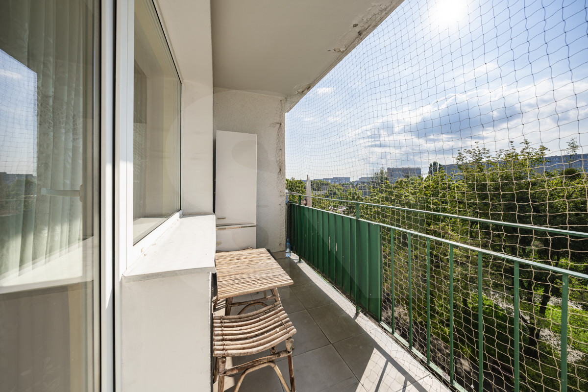 salon o powierzchni 15 m2 z wyjściem na balkon,