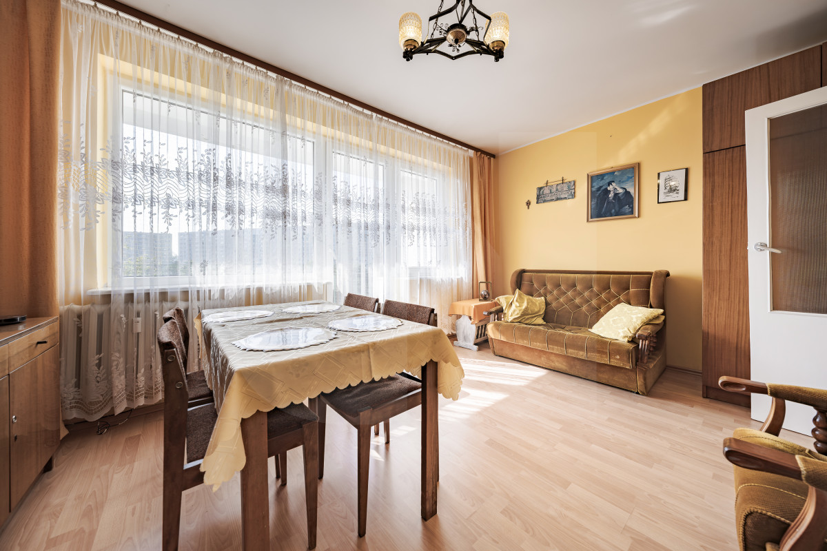 Mieszkanie ma powierzchnię 56,3 m² i znajduje się na 4 piętrze w budynku z lat 80-tych. Do dyspozycji winda.